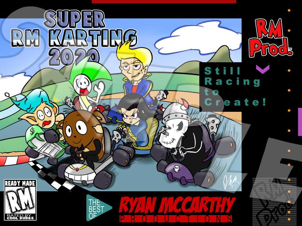 Race to the new year with this postcard print featuring: Gary, Jumper, Tamashi, Joe B. Gamble, Ricky Reaper and Rick Shifter.