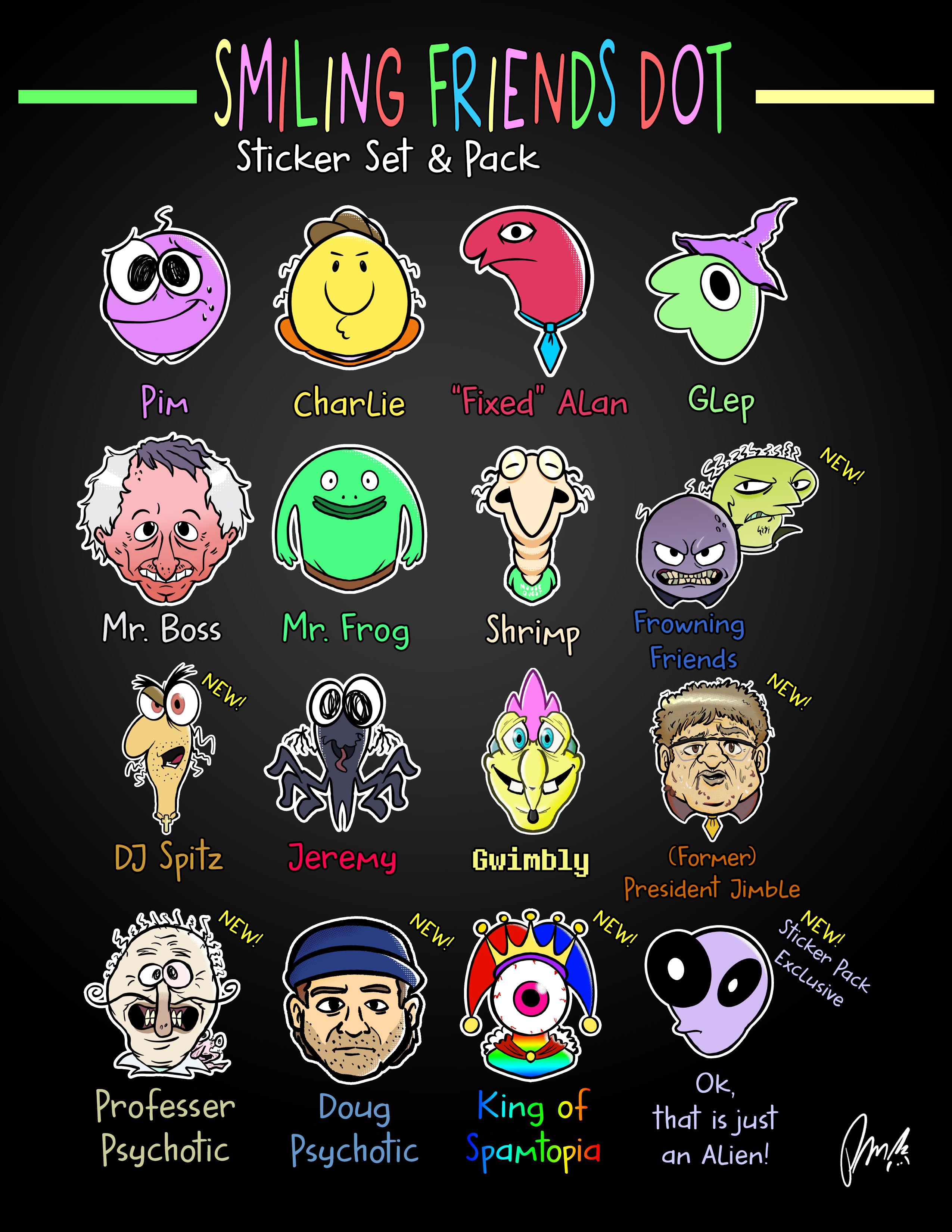 These stickers based of Smiling Friends are sure to make you smile. (and beg for mercy)