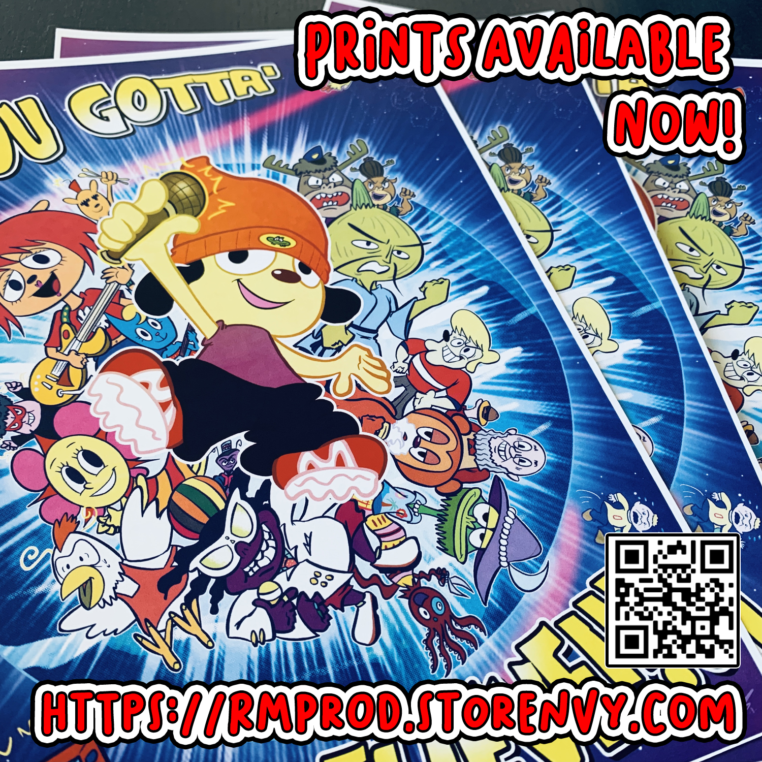 Bigger and better! Parappa the Rapper is new and improved with this 8 x 11 print now featuring the cast from Parappa 1 & 2.