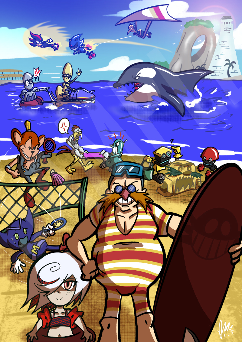 Eggman & Family at Emerald Coast - Sonic Art Print
