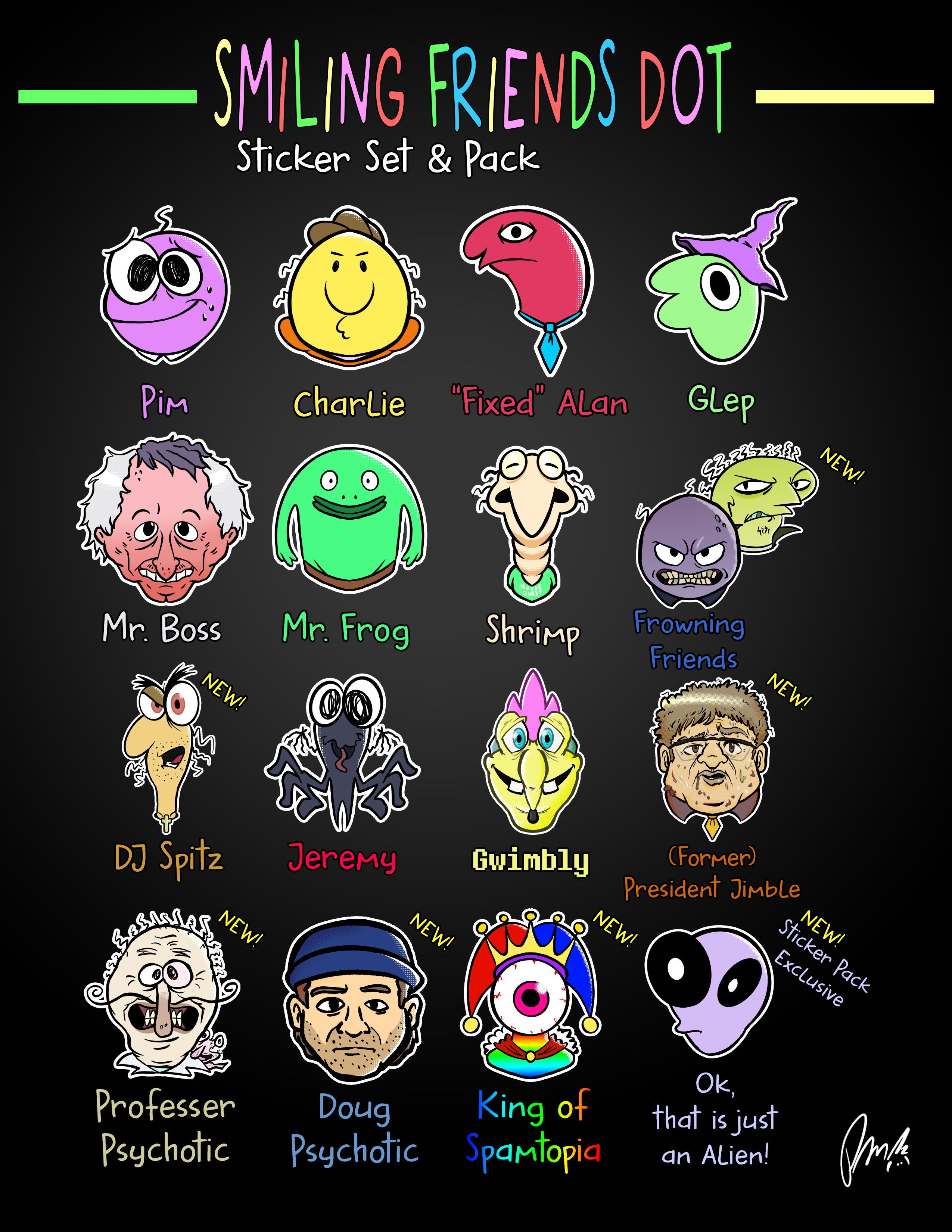 These stickers based of Smiling Friends are sure to make you smile. (and beg for mercy)